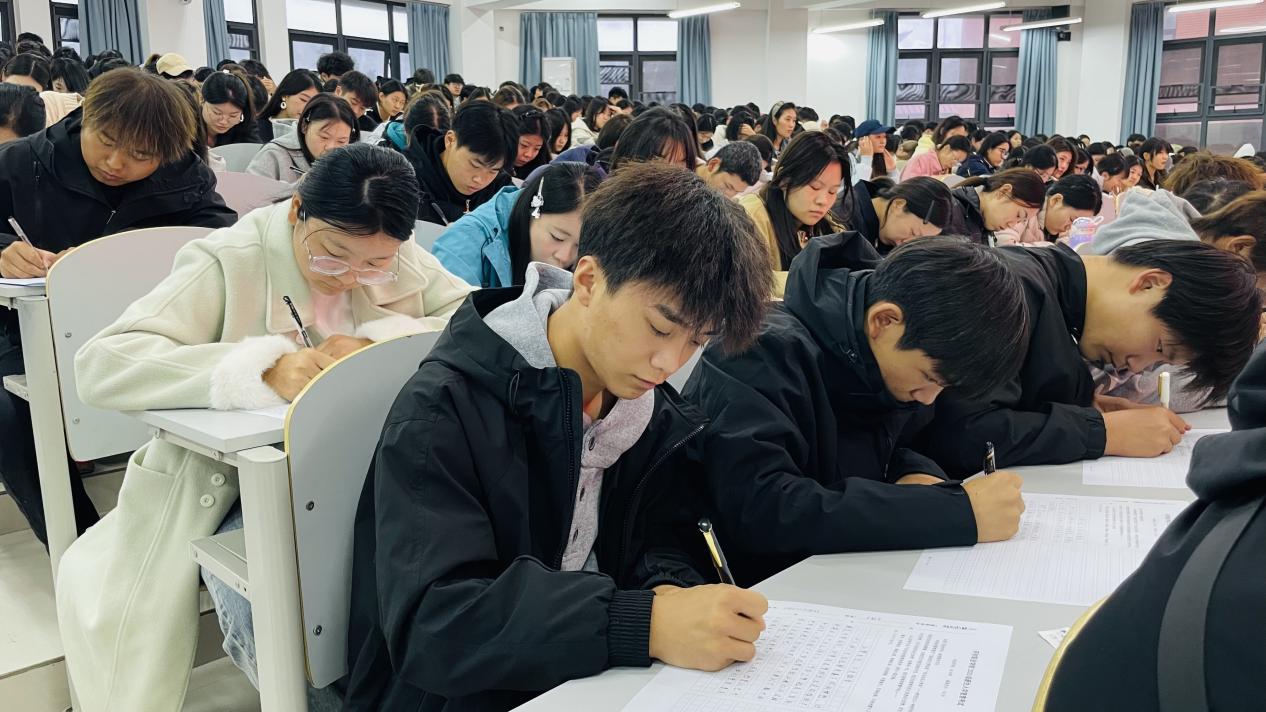 考试过程中,学院精心部署监考力量,由辅导员组成监考团队,全程严格履行职责:考前核对考生身份信息,确保人证一致;考中规范监考流程,实时巡查考场秩序,坚决杜绝作弊、代考等违规行为,保障考试公平公正。全体新生自觉遵守考场纪律,沉着审题、认真作答,整个考场秩序井然,展现出良好的学风风貌。