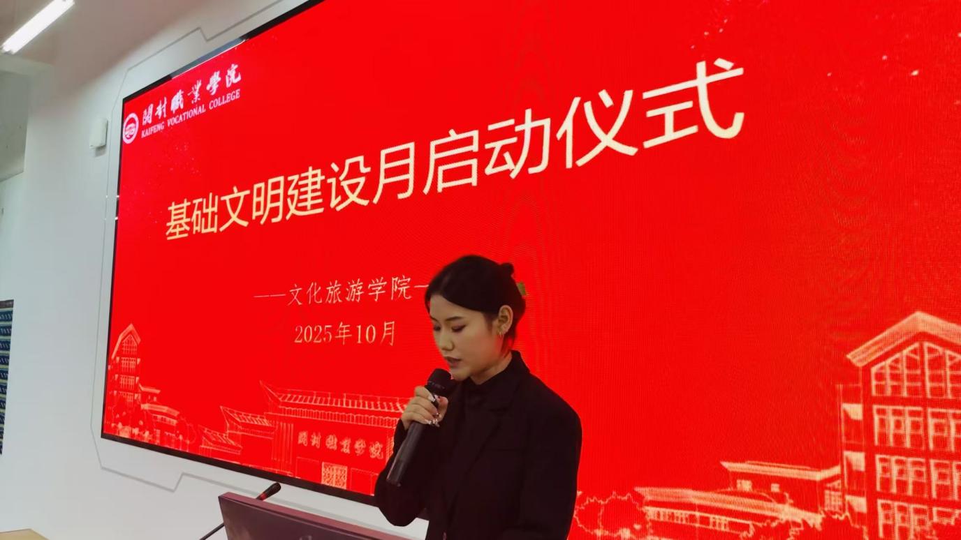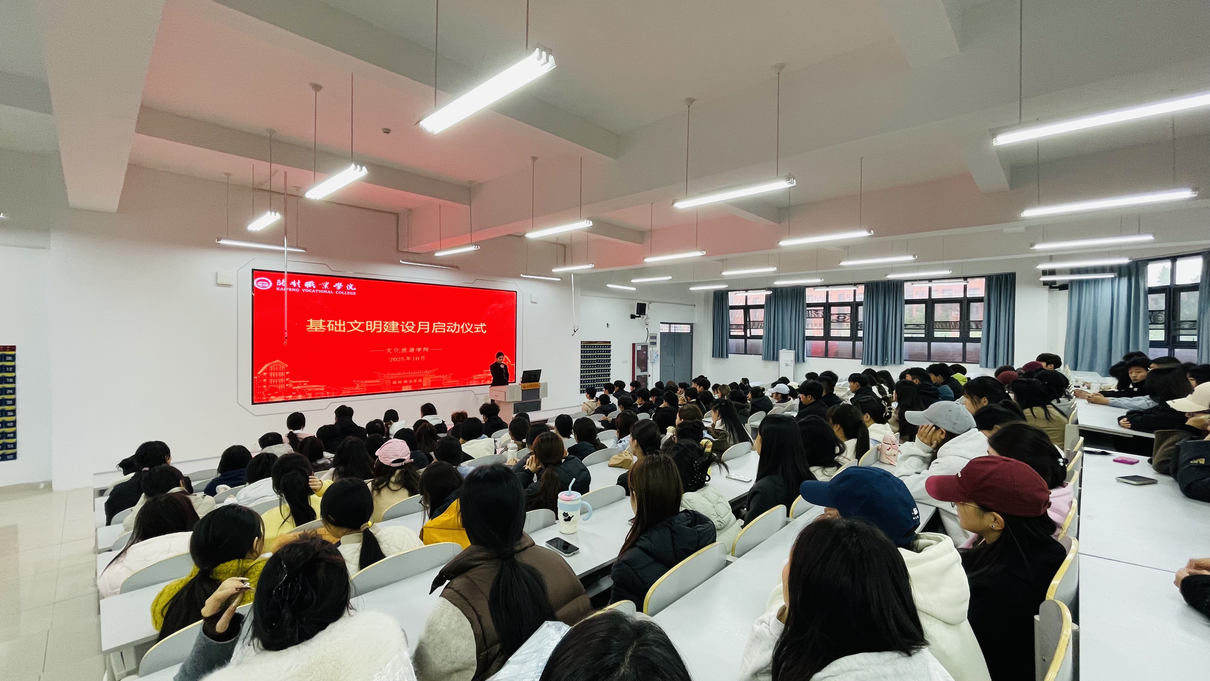 为进一步提升大学生基础文明素养,营造和谐文明的校园氛围,10月21日下午,文化旅游学院在希文楼阶梯教室隆重举行2025-2026学年“大学生基础文明建设月”启动仪式。