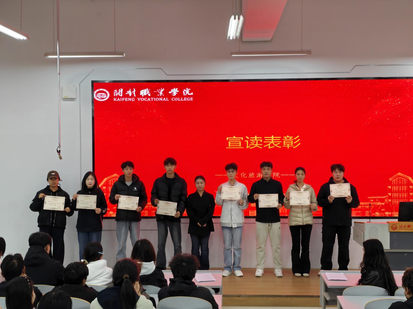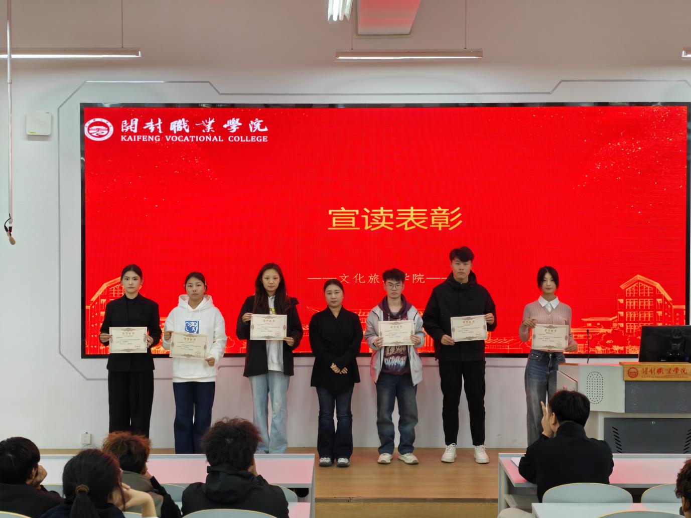 随后,仪式进入表彰环节。为树立先进典型,激发全体学生的进取精神,现场对开封职业学院2024-2025学年表现优异的“三好学生”、“优秀学生干部”,以及2025级新生军事训练中的“先进个人”进行表彰。杨雨晴书记为获奖学生颁发荣誉证书,对他们在学习、工作及军训中的突出表现给予高度肯定,鼓励获奖学生珍惜荣誉、再接再厉,同时号召全体同学以获奖代表为榜样,在学习与生活中践行文明理念,追求卓越。