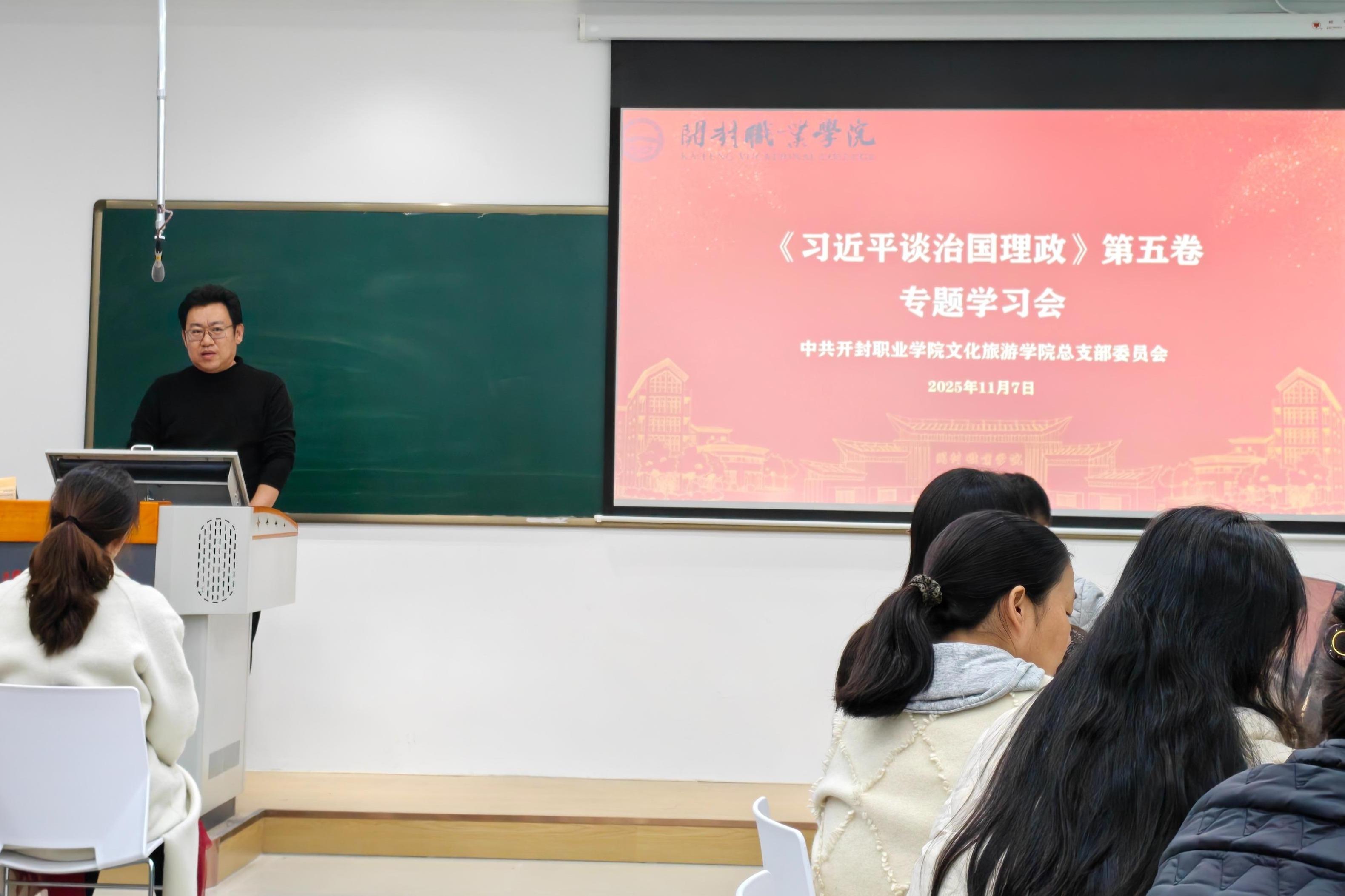 为深入学习贯彻习近平新时代中国特色社会主义思想,11月7日下午文化旅游学院党总支于明仲楼203教室进行常态化政治理论学习会,聚焦《习近平谈治国理政》第五卷开展集体学习与深度研讨交流。此次学习旨在引导全体党员干部深刻把握习近平新时代中国特色社会主义思想的精髓要义与实践要求,进一步统一思想、凝聚共识,为学院高质量发展注入强大精神动力。