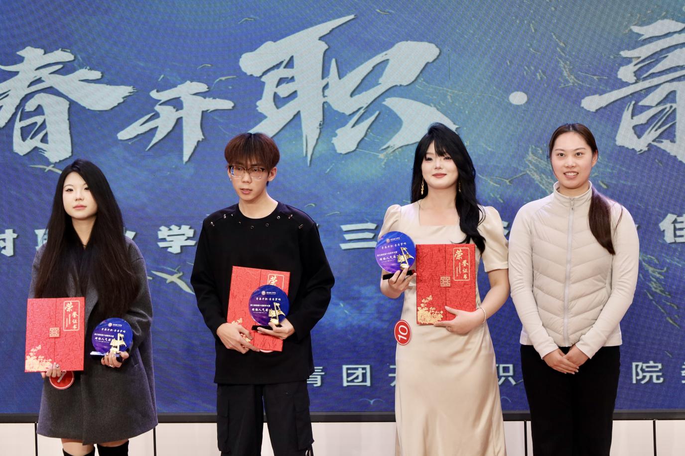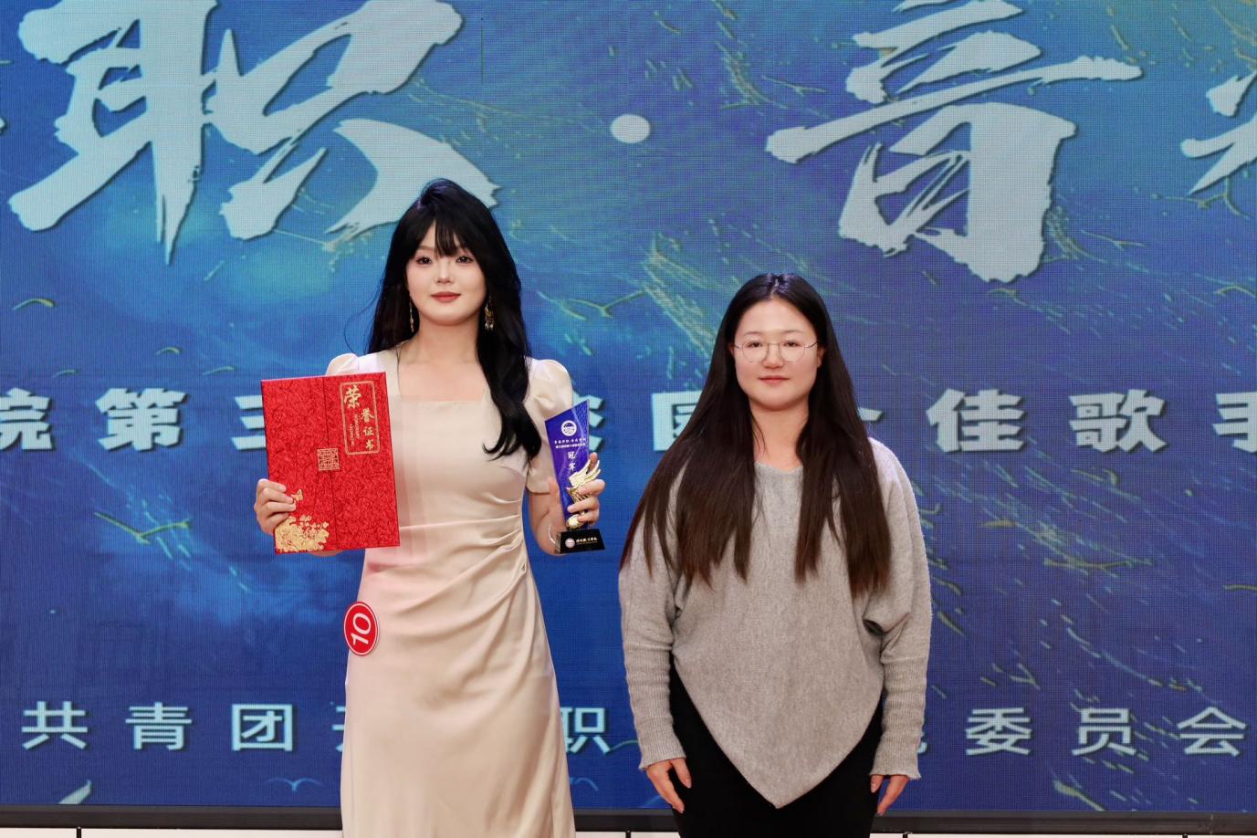 歌声传递青春理想,舞台绽放学子光芒。2025年12月8日晚,备受瞩目的开封职业学院第三届“青春开职·音为梦响”校园十佳歌手大赛决赛在毕昇楼报告厅圆满落幕。文化旅游学院积极响应校园文化建设号召,以赛事为契机搭建学子展示平台,前期通过院内选拔确定5名决赛选手,并配备专业指导老师打磨细节,精心备赛;比赛当天,文旅学子或登台竞唱、或助力表演,用扎实的艺术功底与饱满的精神状态,为现场观众呈现了一场精彩的视听盛宴,也为学院斩获佳绩奠定坚实基础。