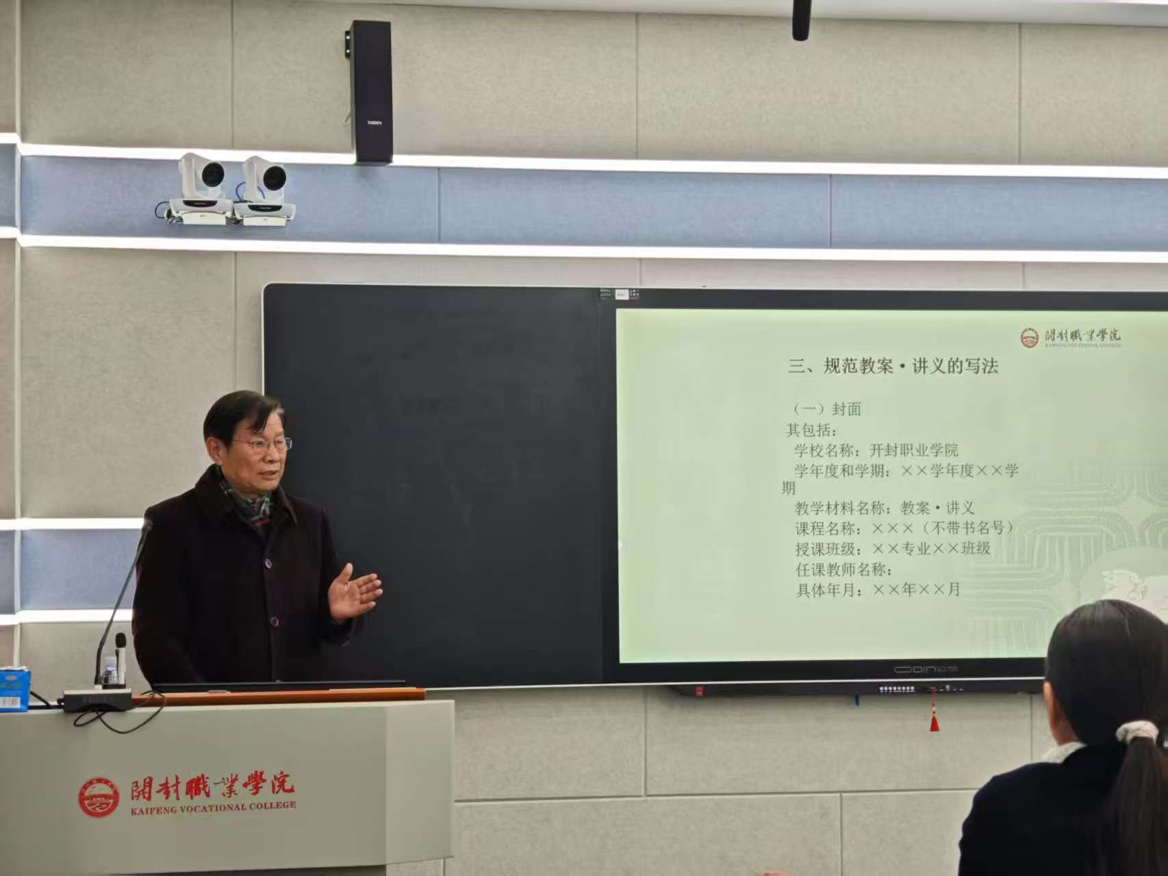 为夯实教师教学基本功、升级课堂教学质量,12月9日下午,由学校教师发展中心统筹、文化旅游学院承办的督导授课活动在毕昇楼212智慧教室顺利开展。活动特邀开封职业学院教授、教学督导、两宋文化研究院院长贾文丰,以 “教案与讲义的规范撰写” 为主题开展培训,学院教师踊跃参与,研讨氛围浓厚。