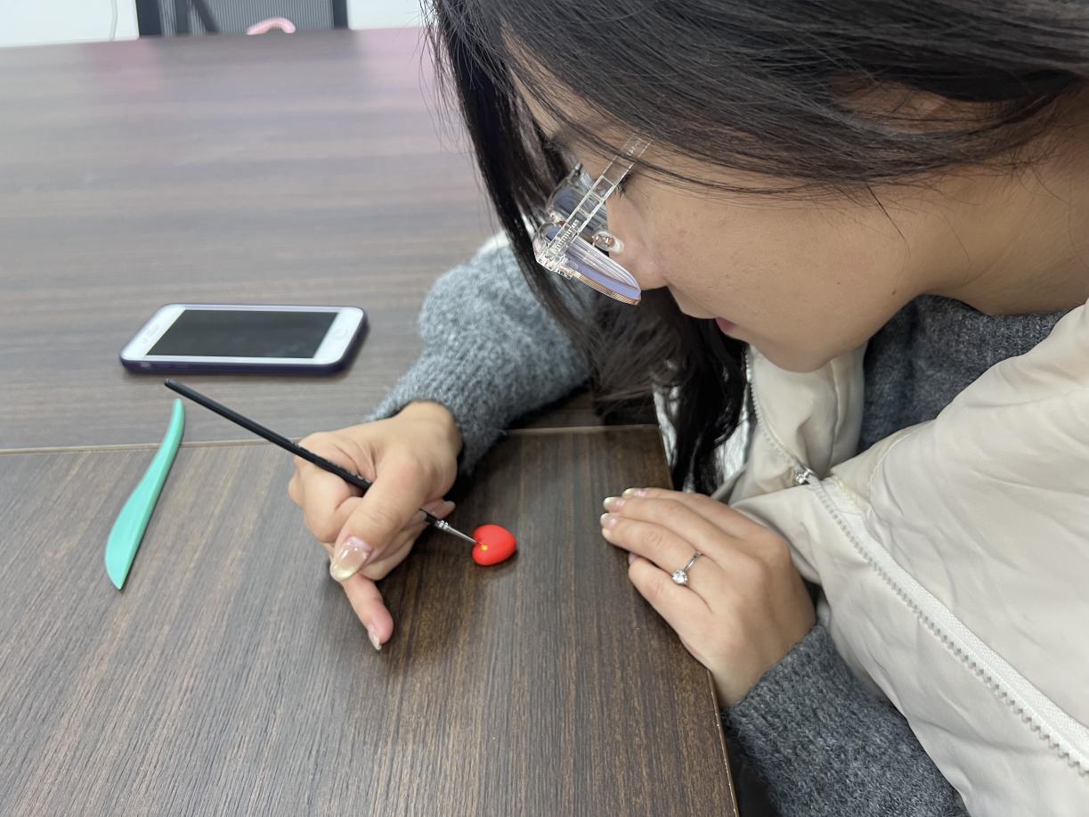 活动现场气氛庄重而热烈。王若燚老师首先阐述了红色主题手工创作在传承革命精神、筑牢信仰根基方面的重要意义,并详细讲解了黏土特性、制作工具使用技巧以及国旗胸章的制作步骤与要点。随后,全体教师党员满怀敬意与热情,在王老师的指导下,投入到爱心国旗胸章的创作之中。大家指尖流转,精心塑形,将爱党爱国之情融入黏土制作中,通过巧手制作出一枚枚鲜红而独特的国旗胸章。