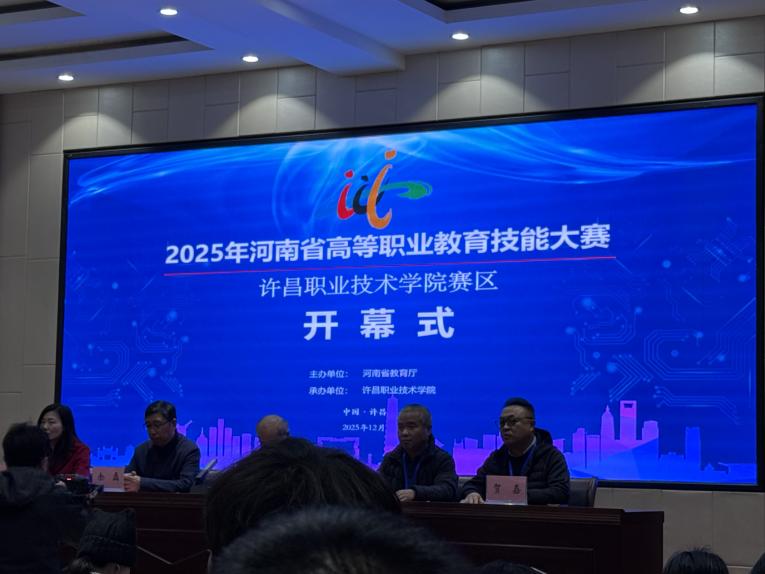 2025年12月21日由河南省教育厅举办的高等职业教育技能大赛航空交通运输赛道高职组比赛在许昌职业技术学院圆满落幕。开封职业学院携手中航未来教育集团,由朱妍主任及王思慧老师带队,张馨月、荣龙康、王宗往、王怡菲四名25级大一学子组成空中乘务参赛组,参赛选手凭借扎实的专业功底和顽强的拼搏精神,在赛事中展现了开职青年学子的昂扬风貌。