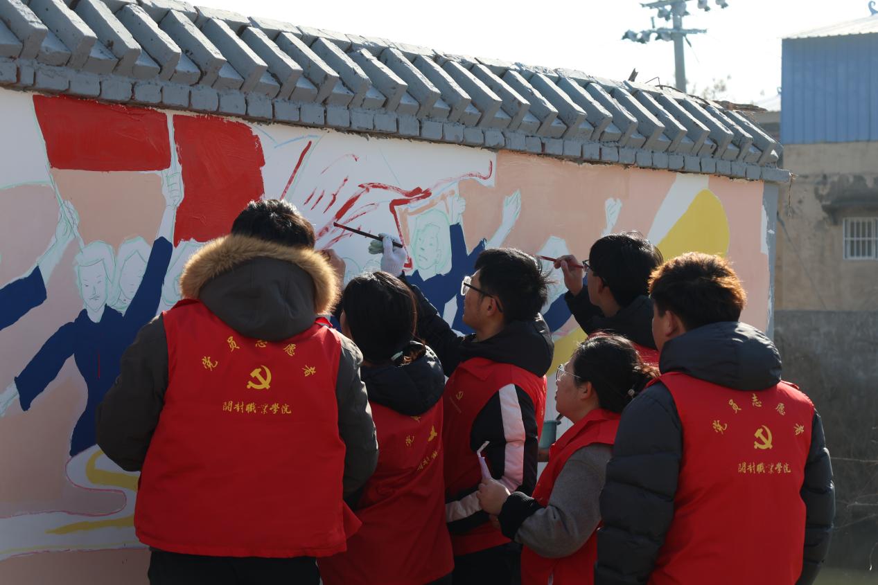 为深入贯彻党的二十届四中全会“扎实推进乡村全面振兴”、“激发全民族文化创新创造活力,繁荣发展社会主义文化”的重要部署,落实习近平总书记“用好红色资源、赓续红色血脉”的系列重要指示,2026年1月12日至13日,开封职业学院文化旅游学院党总支组织师生赴师陀故里——开封市杞县柿园乡前化寨村,开展“红旅同心·化寨同行”党建品牌深化行动暨“师陀青年足迹”第二系列墙绘创作活动,以艺术为桥联结高校与乡村,为美丽乡村建设注入红色文化动能。