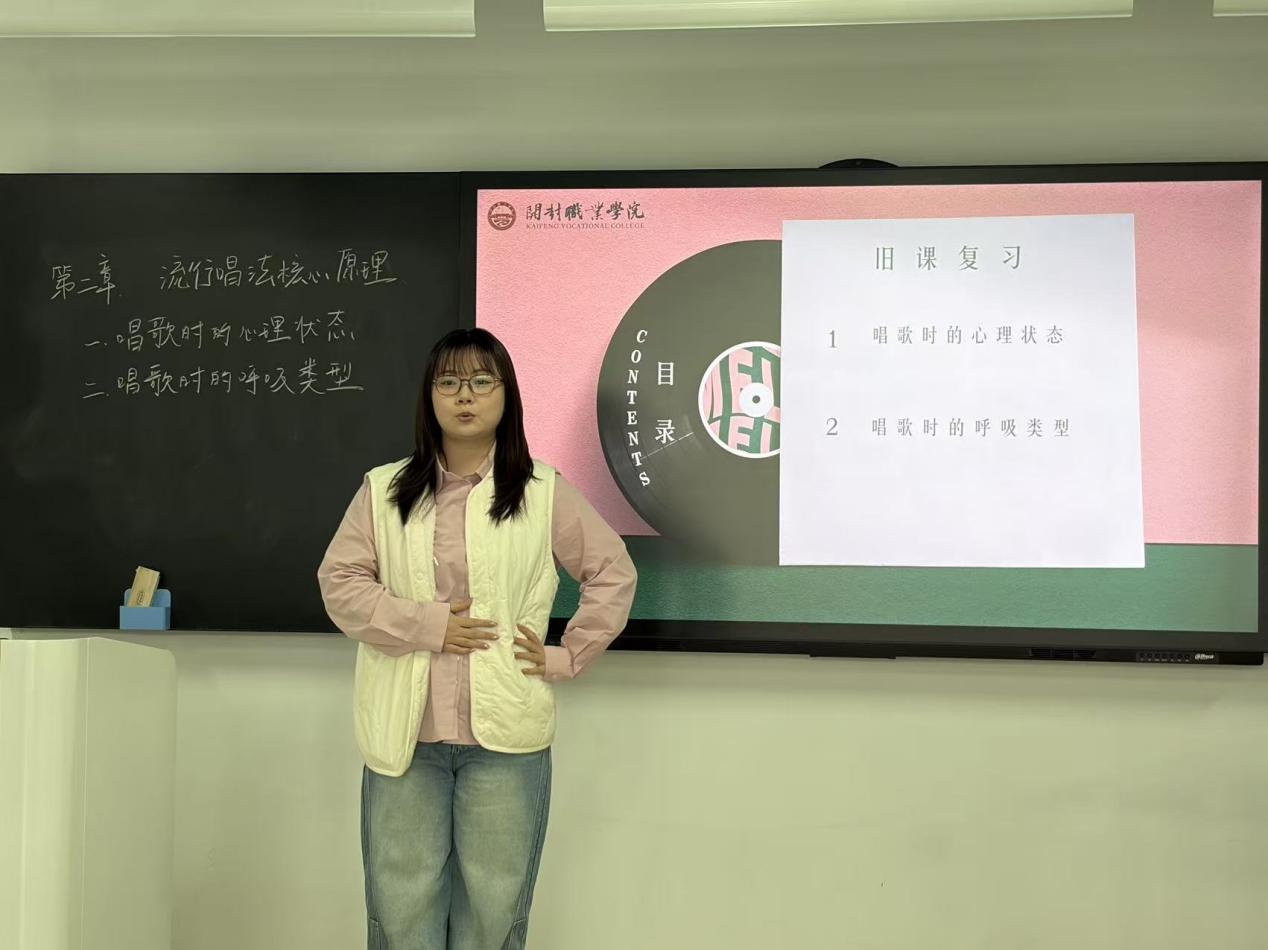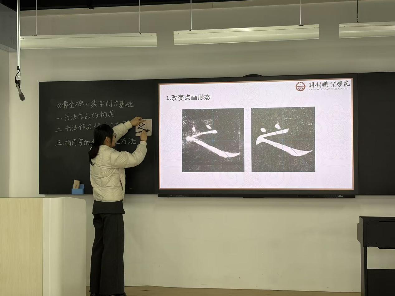 磨课现场氛围浓厚,李想、赵芸两位青年教师精心准备、从容展示,围绕各自授课主题展开细致打磨。李想老师的书法课程以《〈曹全碑〉集字创作基础》为题,围绕《曹全碑》艺术特点,系统讲解幅式、章法、字法等内容,清晰呈现书法从临摹到创作的教学思路。赵芸老师讲授《流行唱法常用呼吸技巧》,紧扣 “气随情动” 特点,通俗讲解不同流行风格歌曲的呼吸方法,分享了“闻花香、吹蜡烛、吹纸片”实用练习技巧,将抽象理论转化为直观实操。