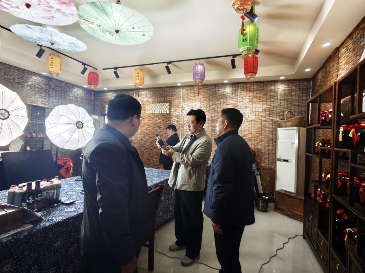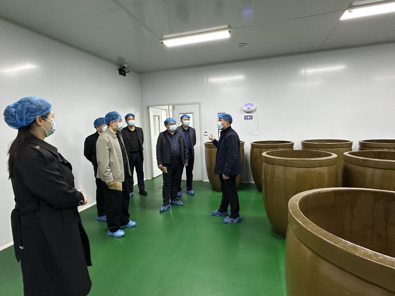 在古酿坊食品有限公司负责人的陪同下,调研团队首先参观了企业核心产品“鑫老包红薯醋”的古法酿造生产线。从原料筛选、固态发酵到淋醋陈酿,企业坚持沿用传统酿造技艺,并结合现代食品安全生产标准进行规范化管理。调研组详细询问了发酵周期、品质控制等关键环节,并对企业“传承不守旧,创新不忘本”的生产理念表示认可。随后,一行人参观了企业产品展示区,了解了红薯醋系列产品的包装设计、市场定位及销售渠道现状。